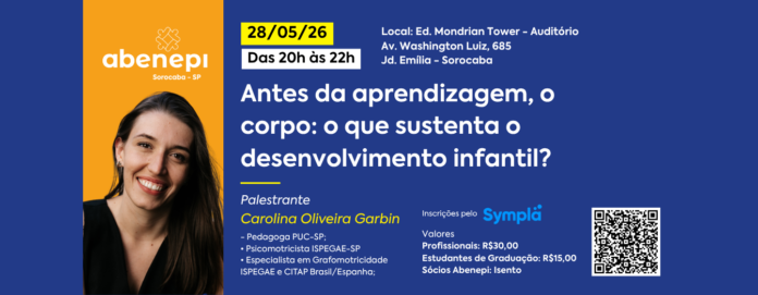 Inscrições via Sympla: https://www.sympla.com.br/evento/antes-da-aprendizagem-o-corpo-o-que-sustenta-o-desenvolvimento-infantil/3401368